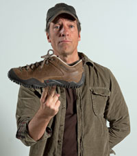 Here, we see a nice man named Rob, who is in charge of making sure my boots get made with all the expertise and craftsmanship that CAT Footwear is famous for. Behind him is a cardboard cut-out of a nice girl named Kelly. In spite of the fact that she is kicking him in the ass, Kelly works for Rob, and handles the marketing for the mikeroweWORKS/CAT Footwear partnership. I believe her penchant for violence and enthusiasm, combined with Rob’s obvious commitment to diligence and attention to detail, will ensure our mutual success.
