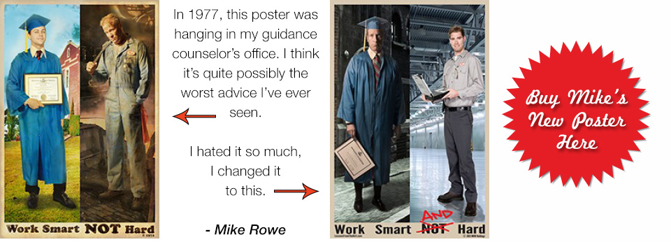 Posters are $12 or as much as you want to give. All proceeds go to the mikeroweWORKS Foundation, which pays for trade school scholarships.