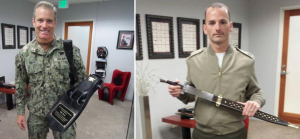 And here is Gunnery Sergeant Pete McKinney. Sergeant McKinney arrived shortly after Captain Smith departed. He was on his way back to Twenty-nine Palms from God knows where, and stopped by to give me a ceremonial sword. At least, I think it’s ceremonial. It could be the real thing, which will come in handy around the office. Either way, Gunney McKinney is a US Marine, and he was asked by his officer-in-charge – Captain Mike Ulmer – to present me with a token of gratitude in recognition of a small service I was able to offer the Marines a few months ago.