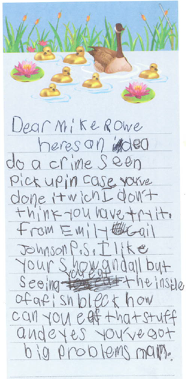 Also – I’m not sure if you heard, but Dirty Jobs is over. It’s true. Discovery canceled the show two years ago. But don’t be sad. You can watch the reruns on Animal Planet all day long! In fact, Dirty Jobs is now the only show that Animal Planet is allowed to air – even if there are no animals featured in that particular episode! Animal Planet is now “surprisingly human!” Isn’t that cool?Anyway, I’m working on a new show you might like. It’s called Somebody’s Gotta Do It. Somebody’s Gotta Do It is like Dirty Jobs, only with less dirt. You can watch it on CNN. CNN is like Animal Planet, only with more animals.In a few weeks, Somebody’s Gotta Do It will be shooting in Atlanta and Denver, so if you know anyone who lives there that’s super cool, or does something really interesting but not necessarily gross or disgusting, drop me a line right here. All my ideas now come from people just like you.