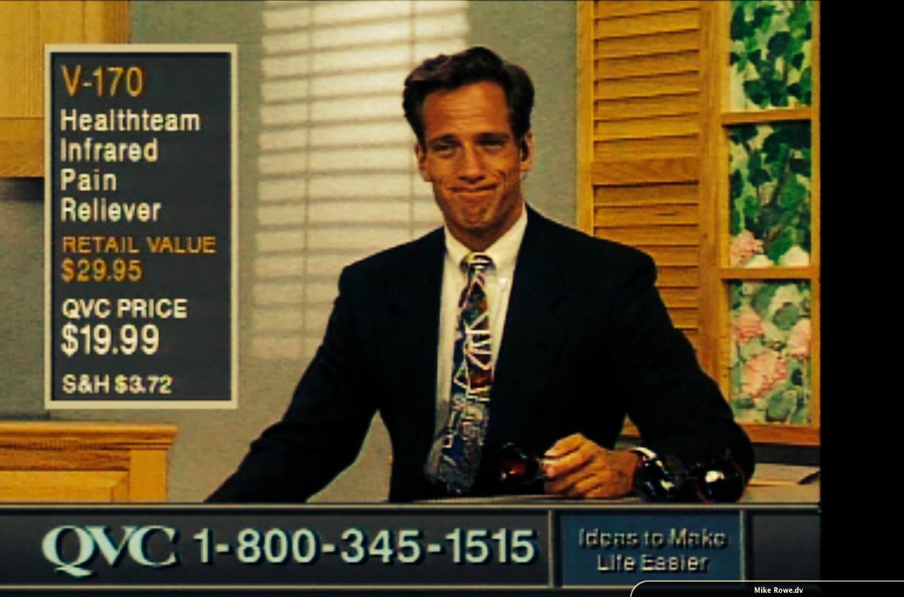 Joan was spending the entire weekend at QVC, touting her line of clothing and jewelry. I’d never met her, and it was unthinkable that my boss would have ever wanted us on the same stage at the same time. QVC was committed to earnest, heartfelt, G-Rated content. I was not. Which is why I rarely saw the light of day. Joan was scheduled to appear later that evening alongside a more reputable host, but on her way to the greenroom, she stopped in front of the stage and watched as I tried to say something flattering about The Healthteam Infrared Pain Reliever. Then she pulled something out of her giant purse, walked onto the set, and began asking me questions on live TV.