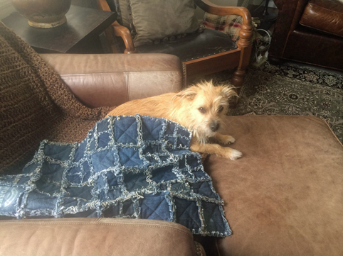 Frankly, I was shocked by the largess, and baffled by the appeal of battered britches. The current bid is already over $5,000, and that, my friends, is a lot of Kibble – even for a good cause. But then, just a few hours ago, The Man in The Brown Shirt delivered to me my very own quilt, slightly smaller, but assembled by the very same necromancer. And now, I have experienced firsthand it’s many hidden delights. And may I just say, this thing is a revelation!