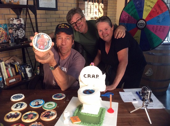 Amy is the best baker I know. She cooks for Al Pacino and lots of other famous people, and wanted to contribute something to my C.R.A.P. fundraiser. So along with the edible commode, (not for sale,) she arrived with a few dozen delicious cookies that somehow bore my likeness. How she accomplished this is a great mystery, but they were magnificent, and afforded me the rare opportunity to eat myself. I’m now pleased to offer you the same opportunity.