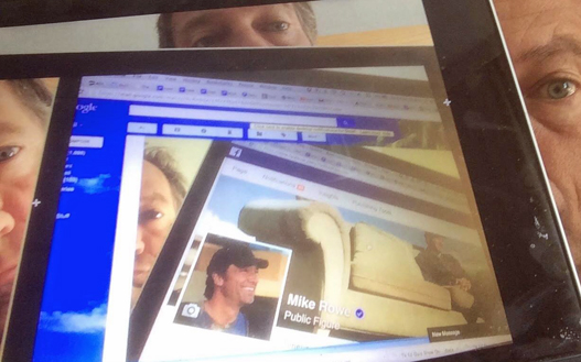 Kelly Falco writes… “Ha! With the cover photo change, it now looks like Mike is looking up adoringly at Mike.”