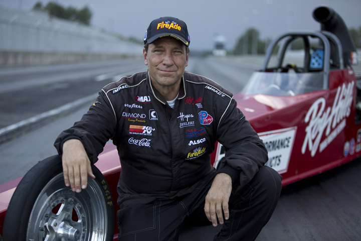 What are we to conclude from photos like these? Do you see a confident driver of dragsters, kneeling before his mighty chariot, contemplating the 1000 horsepower within and reflecting upon his looming race with quiet confidence? Or do you see a man, trying hard to persuade an unpredictable sphincter from destroying someone else jumpsuit?