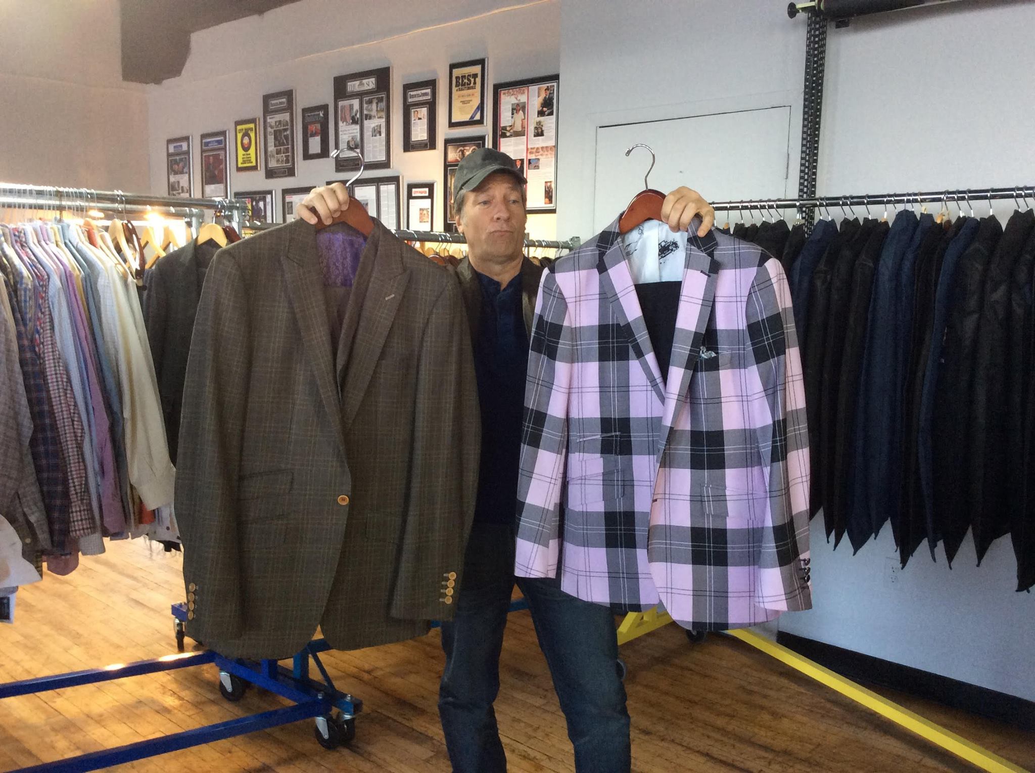 Anyway, as you might imagine, I don’t pay much attention to dress codes primarily because most of my suits are rubber. However, the prospect of addressing a formal gathering in a fancy ballroom bedecked in my very best ball cap and cleanest henley seemed a tad disrespectful. So I ventured out of my hotel this morning in search of appropriate attire, and found myself entering the warehouse of Christopher Schafer – Baltimore’s Best Tailor.