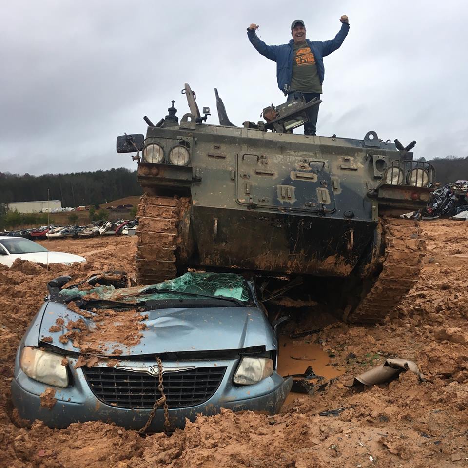 Should you find yourself in Morganton Georgia, as I did yesterday, overcome with pent up rage or encroaching ennui, there’s a guy named Todd who will let you drive over a mini-van with a tank.