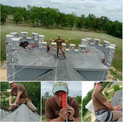 Obviously, images like these beg more questions than answers. Questions like, “What the hell are you doing on a castle, Mike?” And, “Why are you trying to install lightning rods in stormy weather?” And of course, “Why are you wearing another man’s underpants on the outside of your khakis?”