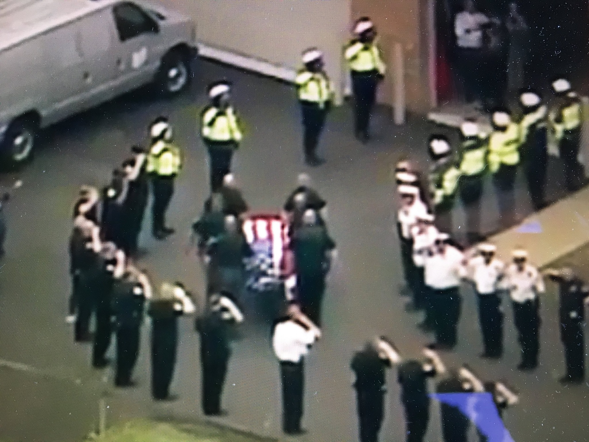 Cops are on television every moment of every day. We see them whenever there’s a riot, or a protest, or a shooting, or an angry mob bent on destroying a neighborhood. I’m looking at one on TV right now – Steven Disario. That’s him in the casket, on his way to the funeral home. He was shot dead in Ohio just a few hours ago, answering a call at a nursing home. Left a wife behind with six kids, and another on the way.