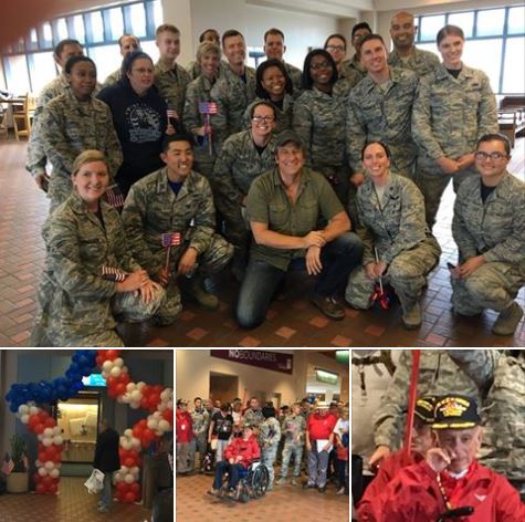 So I’m in the airport, marveling at my ability to book yet another delayed flight, when a few dozen active duty Air Force personnel stop by to say hello. Turns out they weren’t shipping out – they were simply on hand to welcome some veterans back home from an Honor Flight. I asked if I could tag along. They said sure.