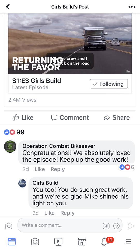 I love this exchange on the RTF page. The sentiment speaks for itself, but also begs a bigger question – where else but here, can a group of Indiana Combat Veterans dealing with PTSD cross paths with a group of young girls in Portland learning how to use power tools? Where else can a guy like Jason Zaideman – with his garage full of beat up motorcycles and beat up soldiers – find common cause with a woman like Katie Hughes, and her makeshift classroom at Portland University?