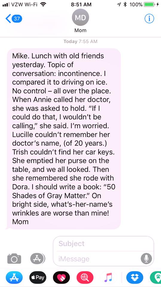 Deprecated: The called constructor method for WP_Widget class in WEN_Business_Contact_Widget is deprecated since version 4.3.0! Use __construct() instead. in /home/mikerowezestsms/public_html/wp-includes/functions.php on line 5506 Text From Mother: Lunch with Friends – Mike Rowe