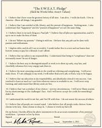 Finally, it might amuse you (but probably not) to learn that I’ve raised tens of thousands of dollars for scholarships by selling S.W.E.A.T Pledges. Thousands now hang in schools, factories, construction sites, and cubicles across the country. If you’d like one for yourself, we sell autographed versions for $12, or $100.00 if you like it personalized. http://ebay.to/2oZg7iz. I’d be happy to send you one for free however, just to prove there are no hard feelings. Let me know!