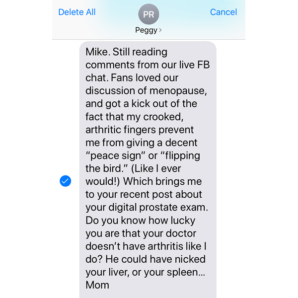As for the text she sent this morning, I’m only sharing it because I don’t want to be the only one with this image seared into my retina. You’re welcome.