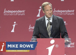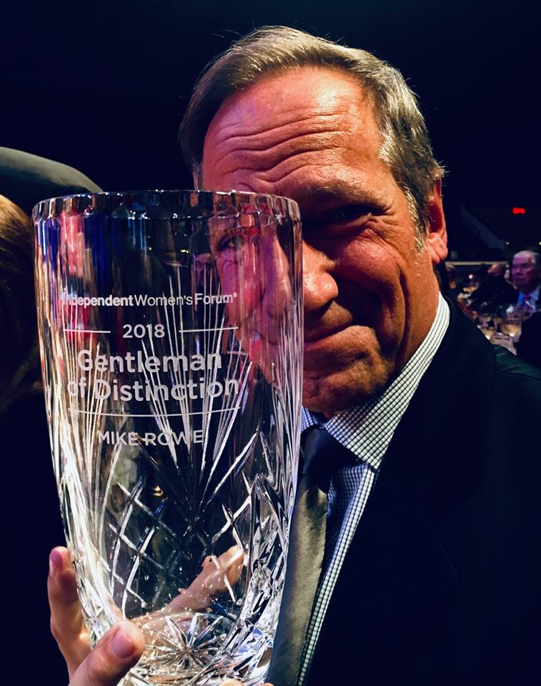 I’d like to publicly thank the Independent Women’s Forum for selecting me as this year’s “Distinguished Gentleman,” and apologize for wearing jeans to what turned out to be a very fancy event. The last ten days have been packed with absolute chaos, including three episodes of Returning the Favor, an event for mikeroweWORKS, several speeches, and approximately fifteen separate media appearances wherein my mother and I shamelessly flogged her best-selling book, About My Mother. (Get your copy at aboutmymotherbook.com.) In other words, I’ve been living out of a bag, and sadly, had no room for matching pants.