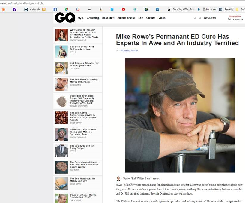 The internet is seething with fake articles about real celebrities talking candidly about their bad skin, their flabby arms, their yellow teeth, their crossed-eyes, their rolls of fat, and of course, their problems below the belt. Invariably, the real celebrities in these fake articles credit a product they’ve never heard of with curing their imaginary condition. Others, (like me, apparently,) are so grateful for their miraculous transformation, they go into business with Dr. Phil, so that other men trying to shoot pool with a wet noodle might find hope.