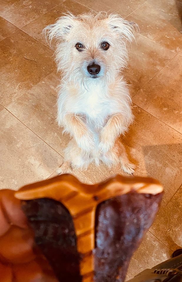 I don’t do it a lot, because it sets a precedent, and leaves me feeling debased and wracked with self-loathing. But the Dream Bone is worth it. I mean, Sweet Lord, look at this thing. It’s the mother of all treats. Miniature T-Bone steaks made with real beef, infused with something that tastes a lot like actual BBQ, enriched with Vitamins and Minerals, (whatever those are,) and delightfully free of rawhide, which has historically transformed my scat into a loose pile of brown yogurt the Biped gamely struggles to retrieve.