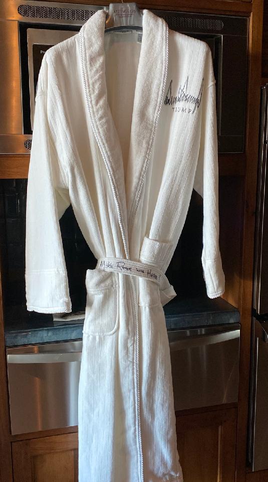 If you had told me last week that I’d be auctioning off the same bathrobe I auctioned off four years ago to raise money for mikeroweWORKS – the very same bathrobe personally signed by then candidate Donald J. Trump – I would have said that you were hallucinating. But, here we are. In a year defined by hallucinatory moments, here’s one more.