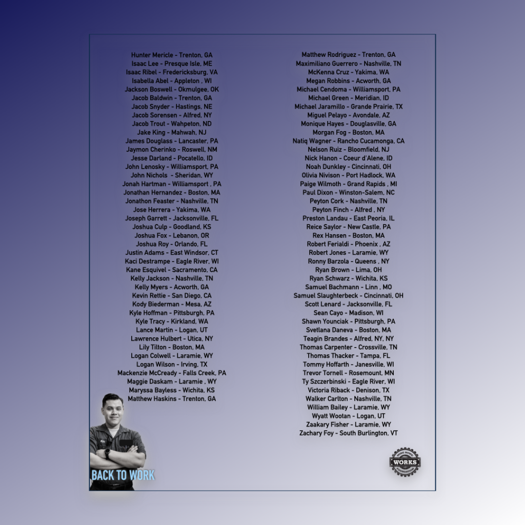 If your name is on the list, congratulations! You appear to possess the attributes we strive to encourage – work ethic, personal responsibility, delayed gratification, and a positive attitude. You’ll soon receive an official notification from mikeroweWORKS. It’s important that you respond to that email to accept the funds.