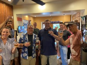 Scott bought a bottle and Liz said, “Happy Birthday.”