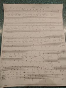 Mike – I’m trying to teach my high school chorus the Dirty Jobs song, but can’t quite pick out the parts. Do you have the sheet music? If so, can you post it? Great show tonight!