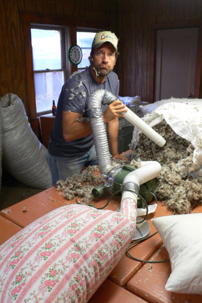 Host Mike Rowe in Dirty Jobs episode, Goose Down Plucker. In Tulelake CA, Mike cleans and processes ducks, using their plumage to make high-quality down pillows at the Tulegoose Pillow Company.