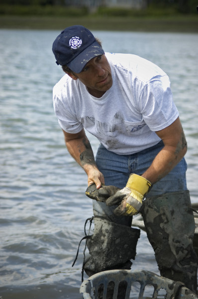 mike rowe, Mike Rowe and Ed Palmer gathering oysters,chick sexer, oyster harvester, 2005