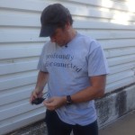 Hung out afterwards with the band for a “wine-tasting.” Here, I’m discussing the writings of Adam Smith with Courtney Taylor-Taylor, a bohemian of extraordinary talent. I don’t know why he has a hyphenated last name, but I like it, and am now considering becoming Mike Rowe-Rowe.
