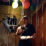 Mike had a birthday surprise waiting for him when he walked into the Voice-over booth. It involved cupcakes, balloons and an adorable pug.